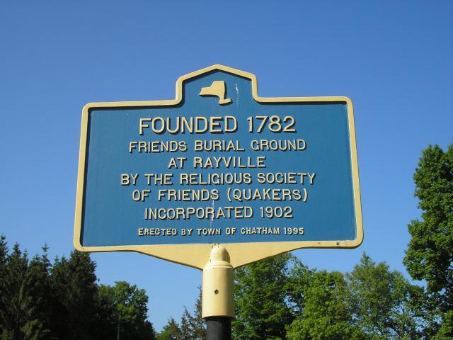 Located on scenic County Route 13 in beautiful northern Columbia County, New York the Friends Burial Ground at Rayville has been a part of the comunity and in continuous use since its establishment by the earliest Friends Meeting in 1782. Although the Friends Meeting  was laid down in 1902 the Burial Ground became incorporated and has been faithfully maintained by a local board of trustees including nearby residents and Quakers from the Old Chatham Friends Meeting.